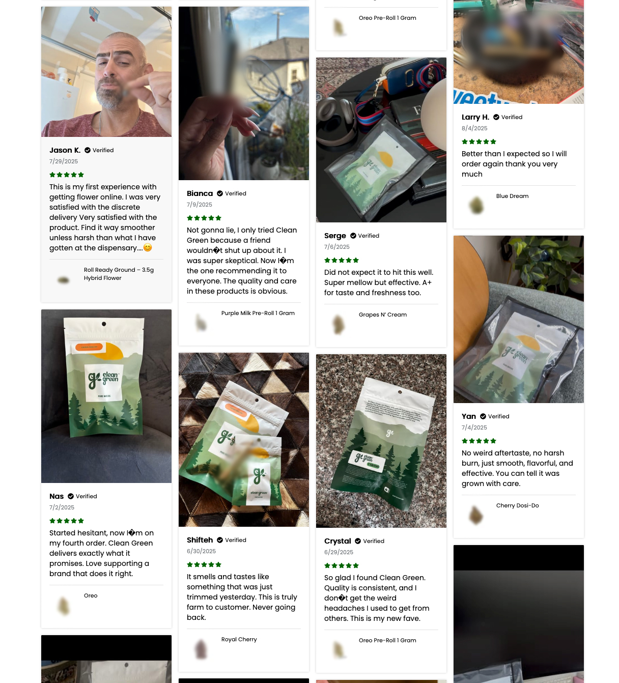 "Better than the shop mj.. smooth (and strong) high but no nasty side effects. Clean green is my go to now for 420."